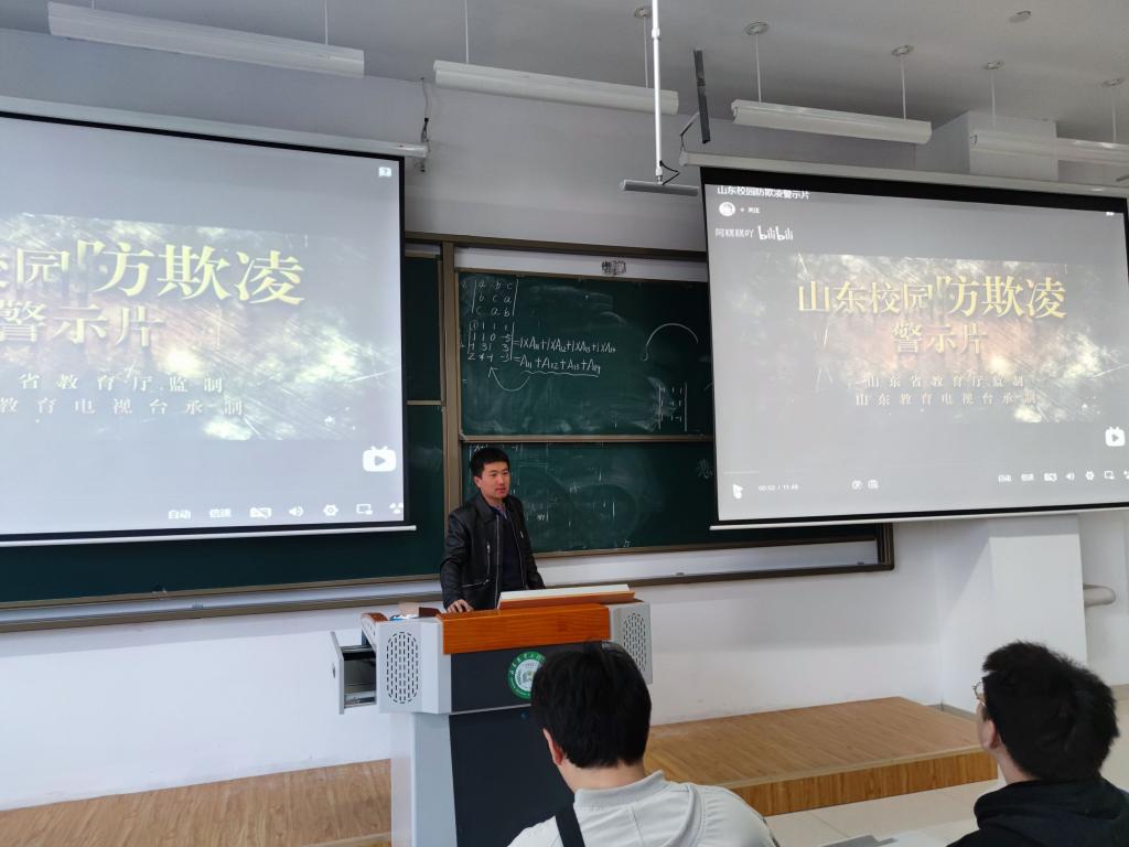 首先,辅导员老师组织各班观看了山东校园防欺凌警示片。警示片中以真实的案例为基础,直观地向同学们讲解了校园欺凌的种种现象和严重后果。它不仅揭示了欺凌者的心理动机和行为特点,而且展示了被欺凌者的无助和痛苦。随后,各辅导员老师给同学们普及了校园欺凌的常见形式以及应对校园欺凌的方法措施,使同学们深刻认识到校园欺凌给受害者带来的伤害以及欺凌者所要承受的法律后果。最后,各位老师嘱托同学们要时刻保持警惕,加强自我保护意识,遇到欺凌行为要及时向老师、家长或相关部门报告。