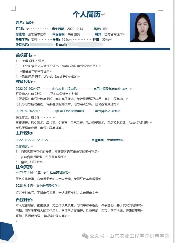 简历是求职的敲门砖,也是同学们展示自身素质和能力的重要窗口。为引导同学们树立正确的就业观念,明确自身职业目标,增强就业意识,提升求职技能,促进更高质量充分就业。机械电子工程学院于3月6日至3月13日举办“简自我风采,历职场未来”毕业生简历设计大赛。此次比赛由我院学生会宣传部承办。