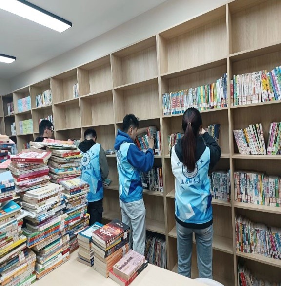 活动伊始,社区李书记对志愿者们详细地讲解书籍的排列规则和注意事项。并为每位志愿者分配任务。活动期间学生们热情高涨,干劲十足。同学们分组进行图书分类、整理、上架等工作,按照图书分类标准,对图书室内各类书籍进行细致整理和归类。大家分工合作,密切配合,充分展现了团队合作的力量。在大家的共同努力下,原本杂乱无章的书籍变得整齐有序的陈列在书架上。志愿者们用辛勤和汗水留下了书香,用严谨和细心带走了灰尘,使得图书馆焕然一新。