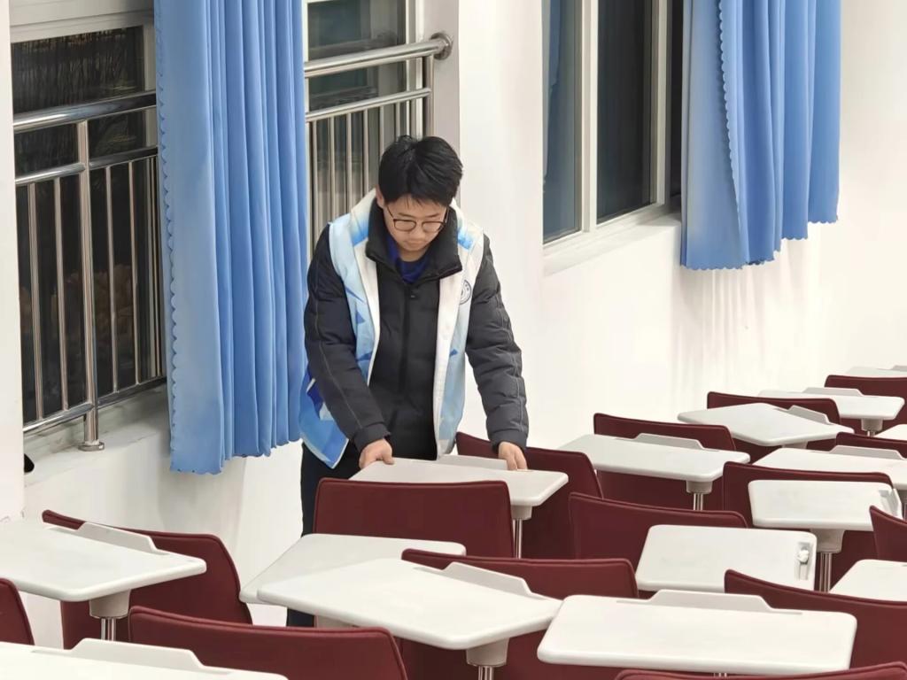参与活动的学生们分成四个小组,分别负责公共教学楼北楼和南楼,每个小组都分工明确,涵盖桌椅检查、多媒体设备维护、数据记录与报修对接等工作内容。志愿者们从一层到五层,逐层检查,有条不紊地开展工作。检查过程中,志愿者们认真负责,不放过任何一个细节,对桌椅的稳固性、多媒体电器设备的运行状况进行了逐一排查。整个检查与维护过程中,同学们展现出极高的责任感和专业素养。面对繁重的任务,大家齐心协力,互帮互助,对于发现的损坏设施,他们不仅详细标注,还及时登记并报修,力求在最短时间内解决问题。