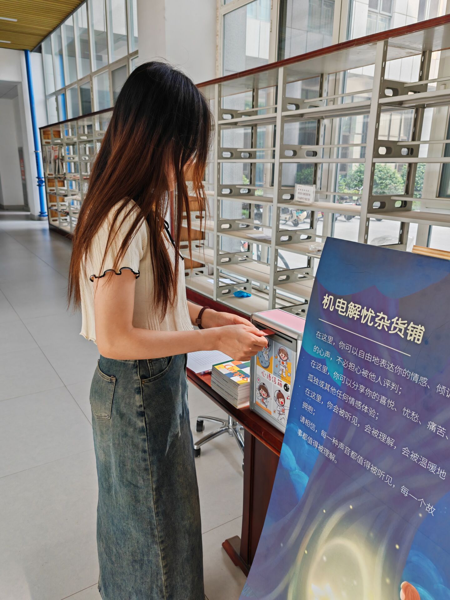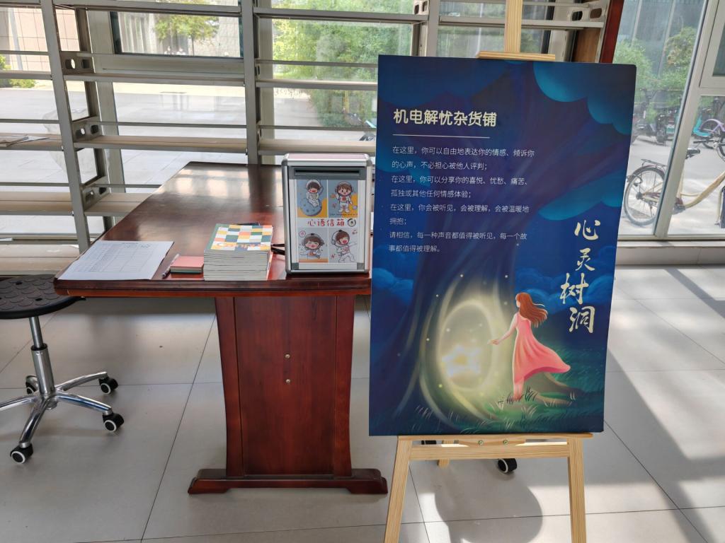 为帮助同学们舒缓心理压力,缓解焦虑情绪,营造积极健康、互帮互助的成长环境,机械电子工程学院于6月18日在理工东楼一楼大厅开展“机电解忧杂货铺”心灵树洞活动。此次活动由我院学生会女工部承办。