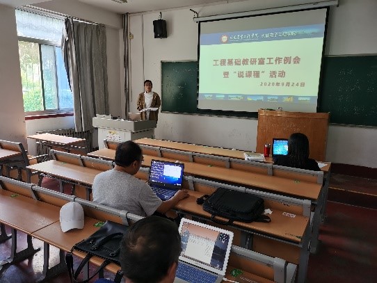 9月24日下午,工程基础教研室在济南校区1号教学楼107室召开了工作例会,会议由教研室主任孟维云主持,教研室全体老师参加了会议,会议对教研室内部课程开展了“说课程”活动,教学秘书孙忠伟老师列席了此次会议。