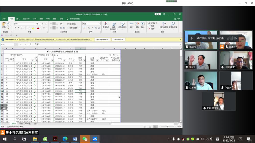 会议首先由学院教学秘书孙忠伟向与会人员传达了相关文件,宣读了学校关于毕业资格审核的通知以及学校学位授予工作实施细则等有关文件,并汇报了2022届本科毕业生毕业资格审核的情况。然后,由学院学位评定分委员会审核学生毕业资格,经表决,机械电子工程学院学位评定分委员会成员一致同意授予已符合学位授予资格的学生工学学士学位。