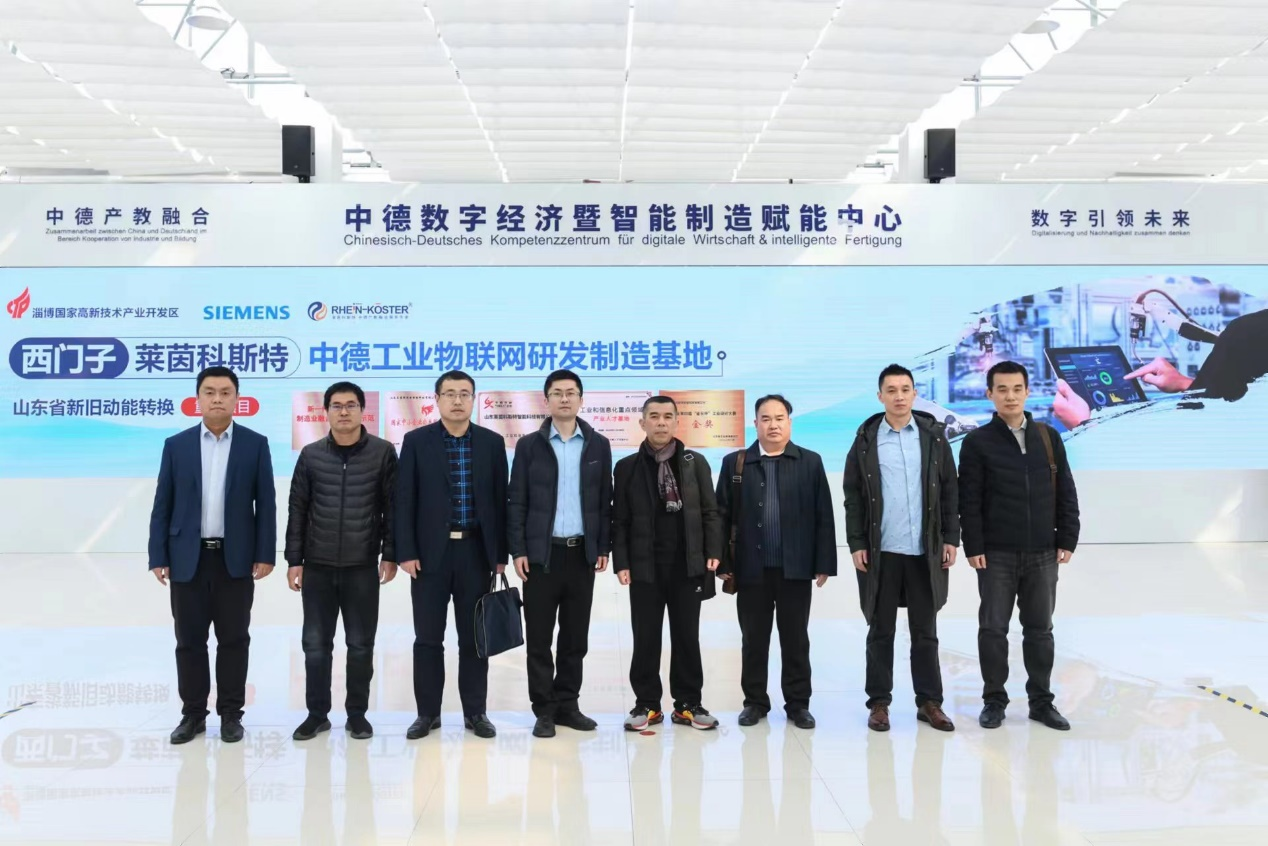 莱茵科斯特双元制教育项目总监孙浩带领调研组参观了教学生产一体化装备研发生产基地、工业4.0智能制造示范中心、齐鲁产教融合互联网平台、中德数字经济智能制造赋能中心,并对学生实习的餐厅、宿舍进行了实地考察。