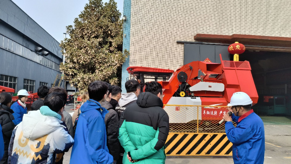 企业指导教师为实习学生开展了安全教育培训,发放了工作服和劳保用品,带领师生们参观了收获机械、动力机械、高端智能装备和车间生产线。