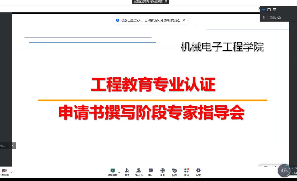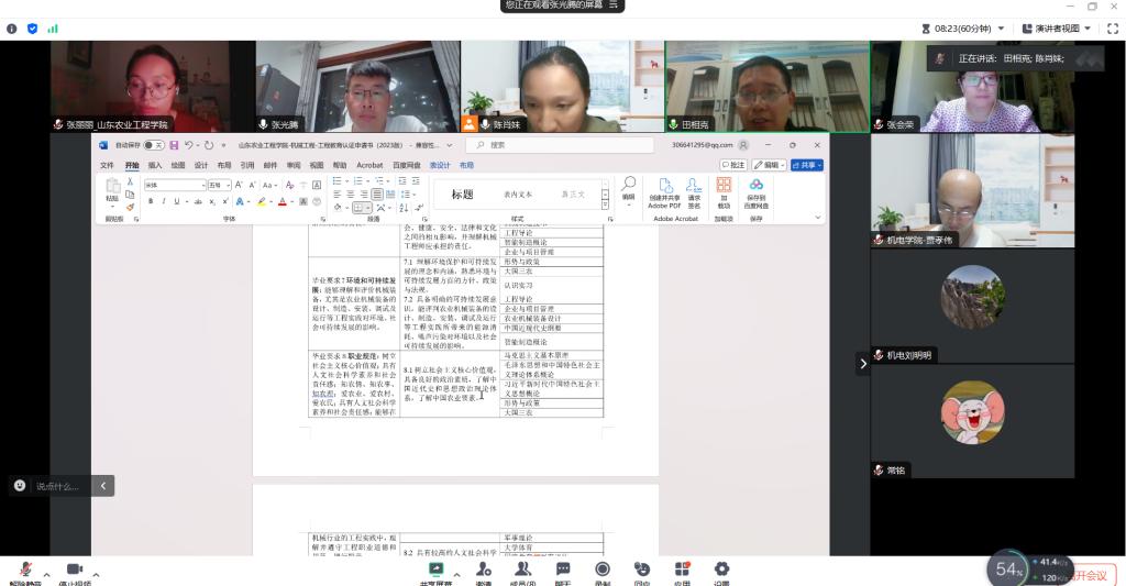为进一步推进机械电子工程学院工程教育专业认证工作,助推专业建设高质量发展,8月23日晚,我院机械电子工程、机械工程专业通过线上会议的形式召开了工程教育专业认证申请书撰写阶段专家指导会议,会议邀请临沂大学机械工程系主任田相克教授进行了工程教育认证申请书撰写指导,机械电子工程专业、机械专业教师参加了此次会议。