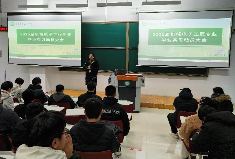 2月23日晚,机电工程教研室在淄公北楼A102室组织召开了2025届机械电子工程专业毕业实习动员大会。会议由机电工程教研室主任陈肖妹主持,负责实习指导的各位专业教师以及我院2021级机械电子工程专业(本科)、2023级机械电子工程专业(专升本)全体学生参加会议。