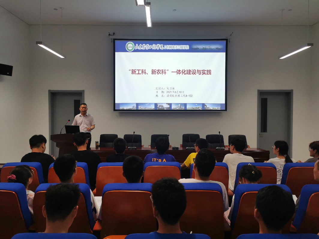 2021年6月10日晚上,院长宋卫海教授在淄博校区理工东楼A101室为我院师生作了题为“新工科、新农科一体化建设与实践”的学术报告。