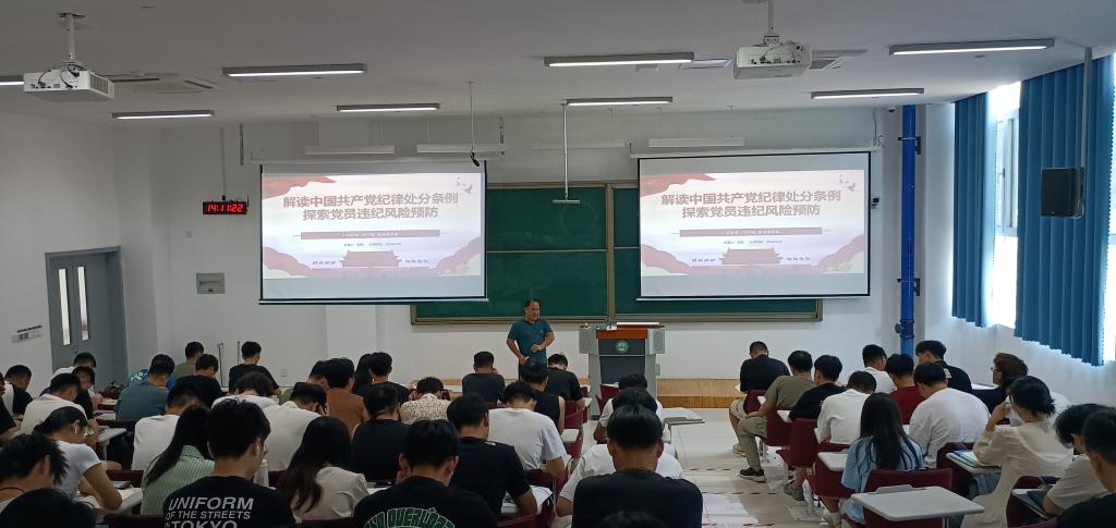 李震副书记结合《中国共产党纪律处分条例》和《中国共产党廉洁自律准则》,从条例5次修订情况、修订意义、内容全文、解读、负面清单以及新形势下高校师生党员违纪风险预防等7个方面进行全面剖析解读。做到学生学纪、知纪、明纪、守纪,搞清楚党的纪律规矩是什么,弄明白能干什么、不能干什么。进一步强化了纪律意识、加强自我约束、提高免疫能力,增强政治纪律定力、组织纪律定力、廉洁纪律定力、群众纪律定力、工作纪律定力、生活纪律定力,始终做到忠诚干净担当。