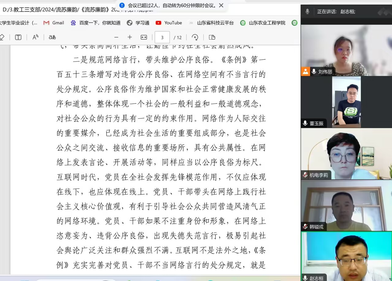 然后,支部每位党员分别领学了近4期《流苏廉韵》的主要内容,包括师德师风、学术失范、党纪党规、典型案例等内容,规范了职业行为,明确了师德底线。