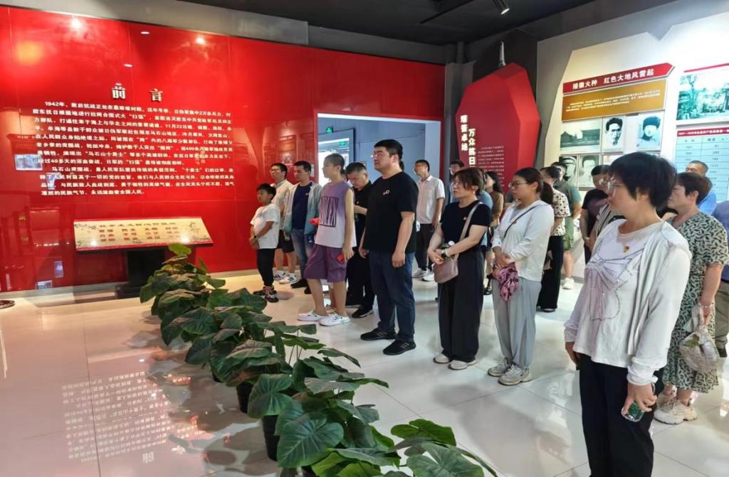 第二站是参观马石山十勇士纪念馆。马石山十勇士放弃归队,反复进出包围圈,营救受困群众,他们视死如归,四闯围网、轮回拼杀,救出上千名群众。“十勇士”以实际行动深刻诠释了共产党人“人民至上”的信仰信念和“生死与共、以命相救”的价值追求。