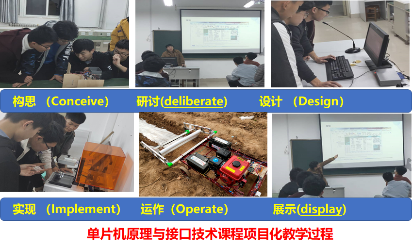 为主动应对新一轮科技革命与产业变革,2017年2月以来,教育部积极推进新工科建设,先后形成了“复旦共识”、“天大行动”和“北京指南”。今年会党委高度重视,2018年1月,校党委印发《关于深入推进新工科人才培养改革强化农业工程特色的意见》,确定“机械电子工程专业”作为新工科试点专业,吹响了“新工科”改革的号角。我们深入行业、企业和广大农村,开展了广泛深入的调研,了解现代农业机械的发展方向和现实需求,在此基础上确定了培养高素质应用创新型现代农机装备人才的培养目标。通过参加“新工科”研讨会、走访调研先进院校、聘请高水平专家进行指导,逐步明晰了“新工科”建设思路,先后制定了《改革方案》和《人才培养方案》。2019年我们通过强化“新工科”理念引领,推进“新工科”的5项改革实践,结合三名工程取得了丰硕的成果。在新工科改革探索中,我们提炼了5大理念:一是服务国家地方战略,是新工科建设的出发点;二是对接产业行业,是新工科建设的落脚点;三是引领未来发展,是新工科建设的新起点;四是学生中心、成果导向、持续改进,是工程教育的核心理念;五是基于生产活动生命全周期的CDIO理念,是培养应用型人才的新型教学模式。两年来我们秉承着新工科的理念,开展了5项改革分别是:一是构建“工农融合”特色人才培养模式;二是基于OBE理念和方法重构课程体系;三是基于CDIO实施项目贯穿教学模式如图1所示;四是深耕行业企业,加强产科教融合和协同育人如图2所示;五是围绕学生社团,打造创新实践教育新体系如图3。