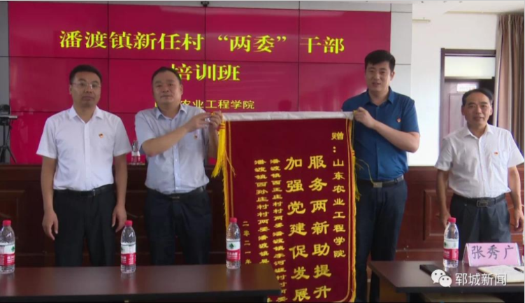 7月10日,郓城县潘渡镇西王庄村、吴皮村、李河涯村、西孙庄村四村向今年会赠送“加强党建促发展、服务两新助提升”的锦旗,对今年会近一年来助力当地加强基层党建工作、帮扶产业发展表示真诚的感谢。