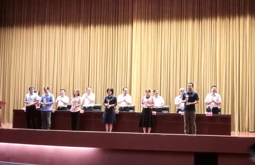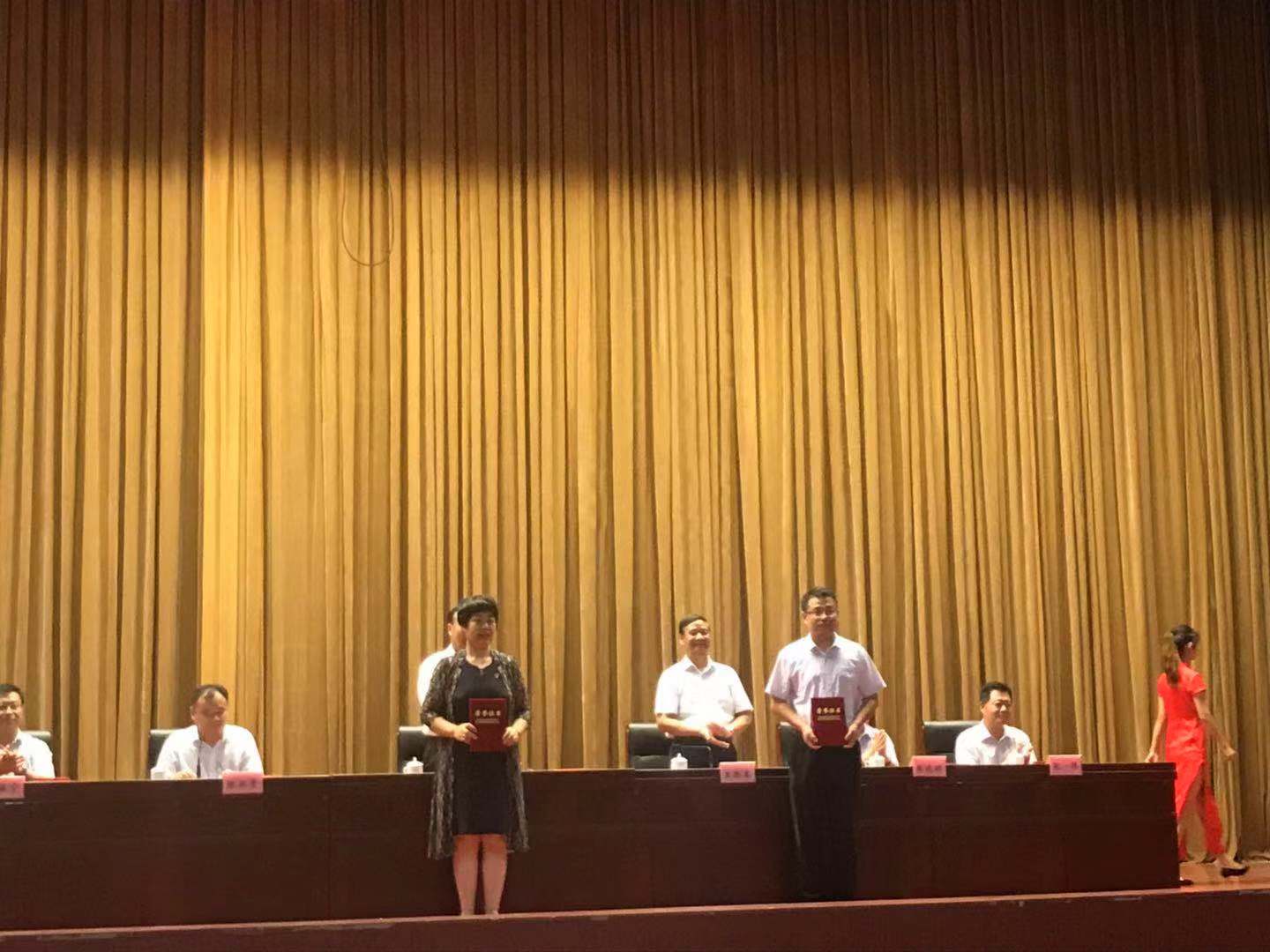 我院党总支被评为省教育系统先进基层党组织,校党委书记丁希滨为先进基层党组织颁奖。