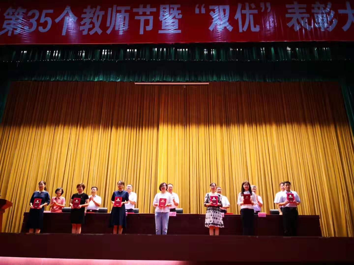 9月10日下午,今年会在北校区学术报告厅隆重举行庆祝第35个教师节暨“双优”表彰大会。省优秀教师、省教育系统优秀共产党员、先进集体、先进基层党组织,学校评选表彰的2018-2019学年最美教师、师德标兵、优秀教师、优秀教育工作者以及优秀共产党员、优秀党务工作者和先进基层党组织负责人,学校各有关部门领导和工作人员,新入职的教师,学生代表等600余人参加会议。