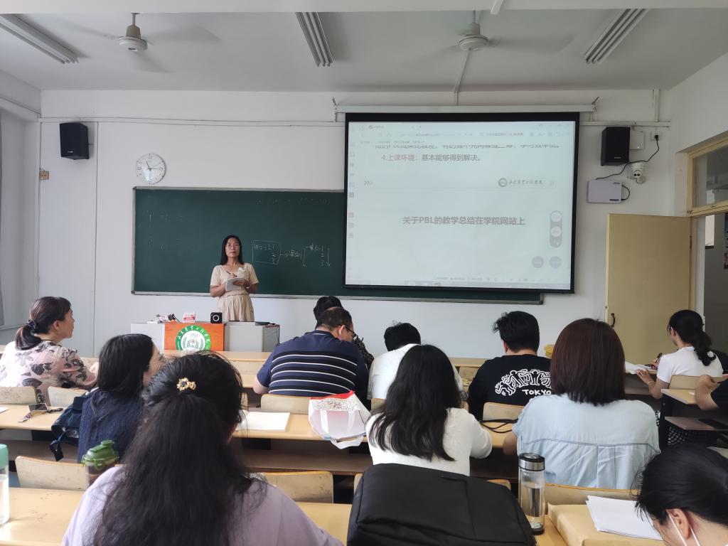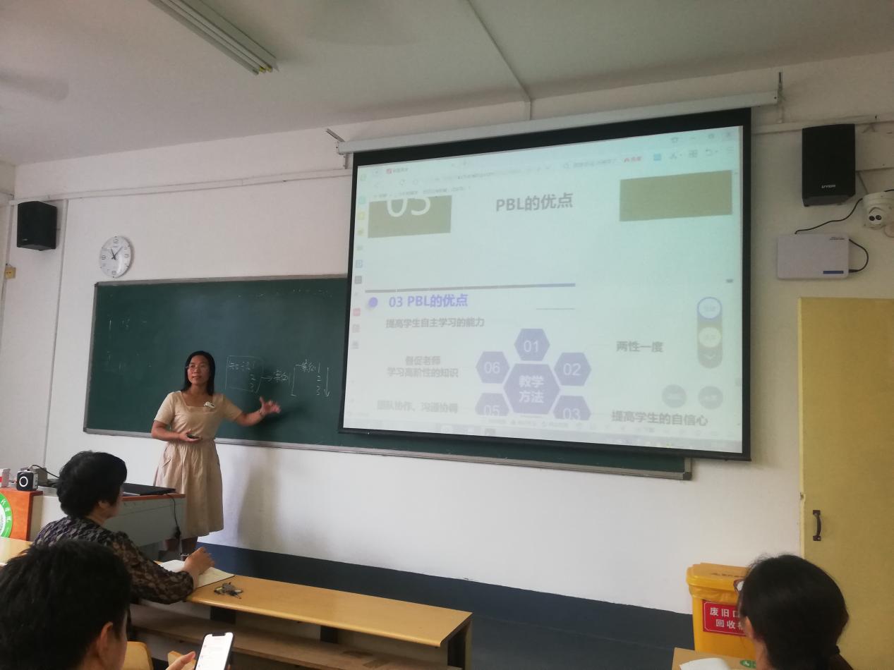汇报主要从“什么是PBL”、“PBL如何实施”、“PBL的优点”、“PBL实施中存在的困惑”四个方面展开,同时结合具体课程深入剖析了PBL教学法的教学过程,老师们都获益匪浅。