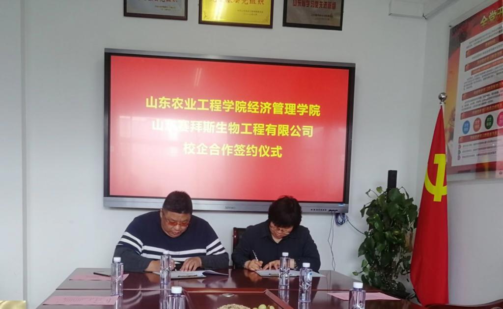 山东赛拜斯生物工程有限公司位于泰安市新泰市,主要从事生物饲料的研发及饲料原料销售,宠物食品及用品批发,中草药种植收购等业务。公司与学院将在优化企业生产销售结构、物流布局规划及冷链物流等方面深入研究探讨,降低企业成本提高企业收益。作为社会实践基地和就业实践基地,将为师生提供社会实践机会,开阔师生眼界,为充实教师理论教学内容和提升学生实际应用能力打下良好的基础。