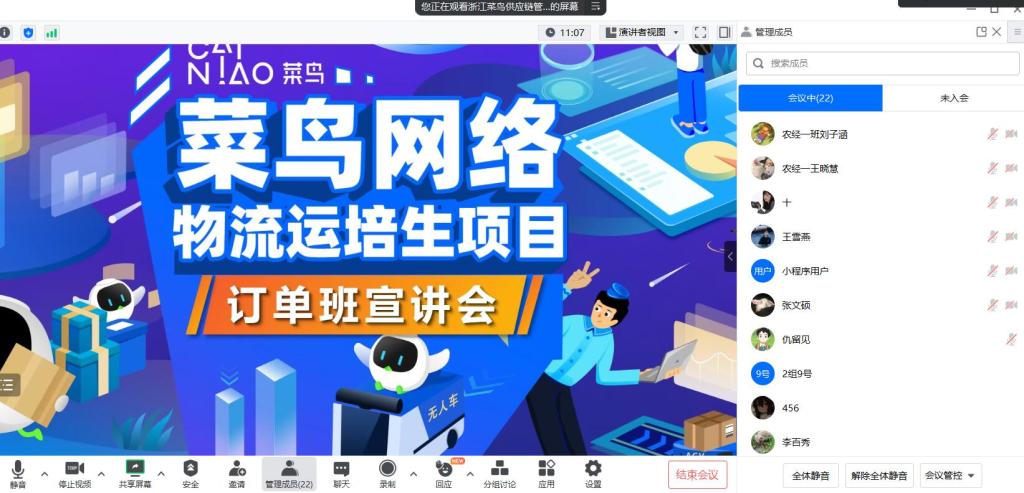 宣讲会上,各企业宣讲经理就公司背景、公司文化、公司现状以及就业岗位福利待遇等方面为同学们做了详细介绍,同学们通过腾讯会议聊天框进行了招聘咨询,企业宣讲经理进行了一一回答。招聘宣讲结束之际,企业留下了微信二维码和简历投递方式等相关信息。