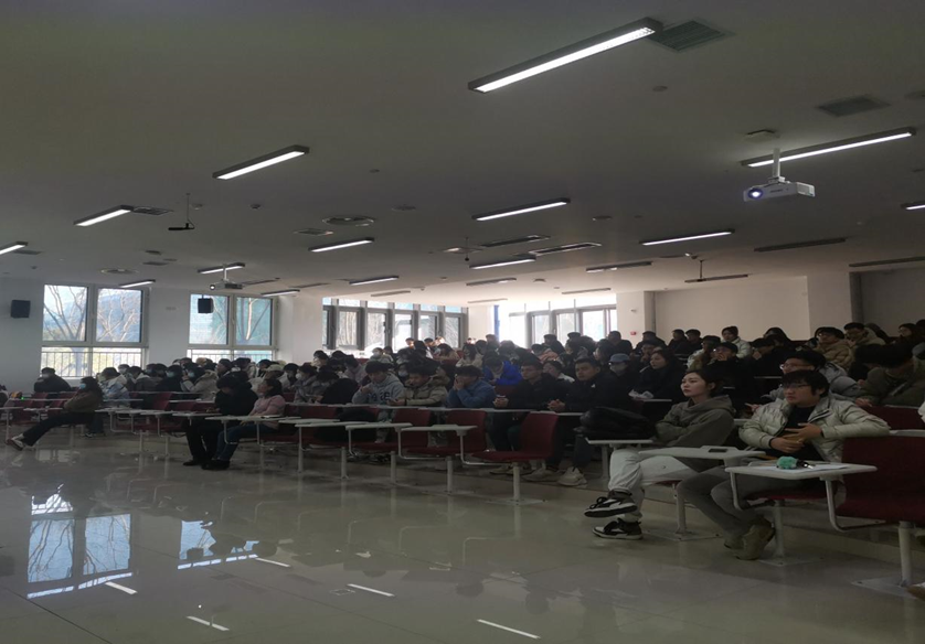 2023年12月25日下午经济管理学院在淄博校区淄公南楼B102教室举办中国通信服务山东公司招聘宣讲会,我院院长李百秀、物流教研室主任陈岱莲、辅导员曹奇以及2024届物流工程专业学生参加此次宣讲会。