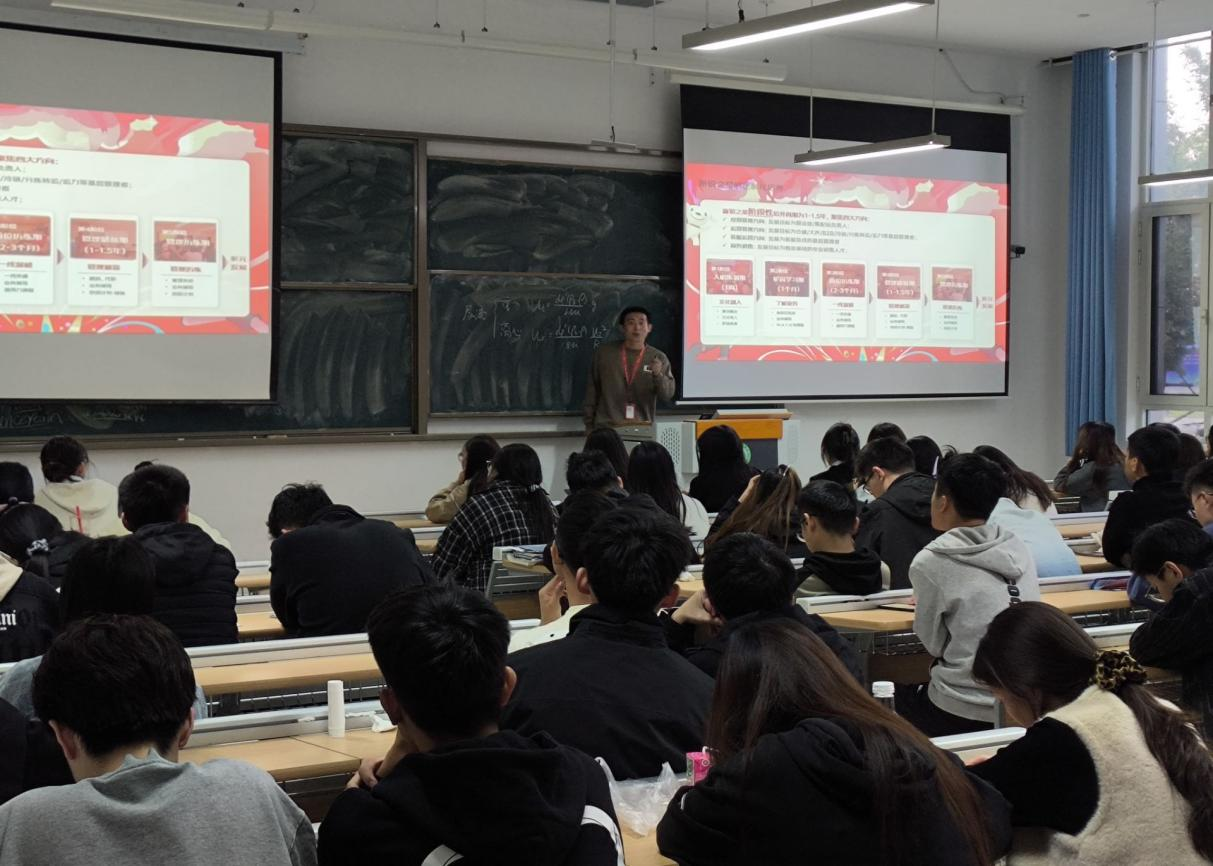 活动伊始,京东负责人首先向在场的学生们介绍了京东集团的发展愿景和职业规划,他通过宣传片详细阐述了京东集团的实力,并通过解析京东九大业务板块,详细介绍京东集团的人才理念、招聘岗位要求、招聘流程、工作地点等内容,使得学生们对于未来的职业选择有了更清晰的认识。