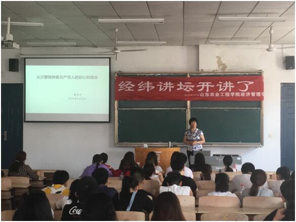 “沂蒙精神的内涵是党为人民谋利益,谋解放,人民坚定地跟党走,党和人民水乳交融,生死与共。”5月23日下午,经纬大讲坛第三十三讲《从沂蒙精神看共产党人的初心和使命》在济南校区东餐厅楼301教室开讲,由我院党总支书记颜素杰教授主讲, 2017级农林经济管理专业的学生聆听了讲座。