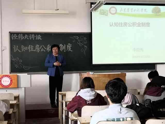 讲座伊始,李教授由大学生毕业后的住房问题引入,点燃了同学们的听课热情。她从我国住房公积金的发展历程,住房公积金的概念和性质,以及住房公积金的特点住房公积金的缴纳方式和作用,住房公积金贷款的各个方面,全面详实的向同学们阐述了我国住房公积金制度从产生到发展再到具体执行的方方面面。最后李教授以济南市的公积金制度为例向同学们讲述了大学生在择业的同时要注意用人单位的住房公积金情况和工作后如何去利用住房公积金来减轻自身的购房买房负担。