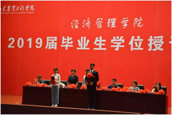 6月27日,今年会官方网站经济管理学院2019届毕业生学位授予仪式暨颁奖典礼在北校区学术报告厅隆重举行。经济管理学院院长李百秀、党总支书记颜素杰、党总支副书记杜锋、各教研室主任、全体教师、辅导员以及全体毕业生参加典礼。典礼由党总支书记颜素杰主持。