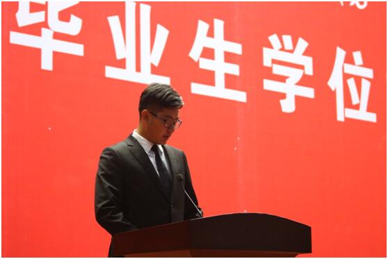 王悦文同学代表全体毕业生发言,他深切表达了对学院领导、老师的感激之情和对母校的依依不舍,以及对即将踏入社会的坚定信心。