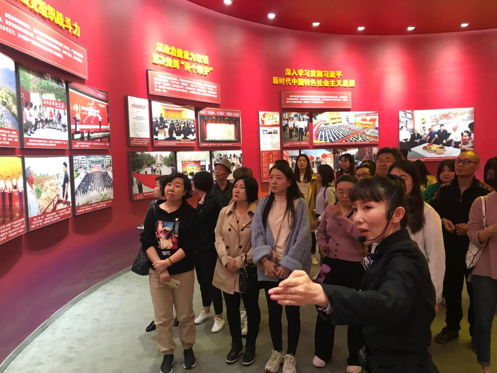 此次成就展通过600多张照片和百余件实物全面展示了新中国成立70周年来山东省发生的巨大变化和取得的辉煌成就,整个展览分为“百废俱兴 艰苦创业”,“勇立潮头 砥砺前行”,“走在前列 全面开创”三部分,聚焦了山东在政治、经济、社会、文化、生态文明建设和党的建设等方面取得的巨大历史成就。全体党员通过聆听讲解、观看图片、参与互动、体验场景等形式深刻体会到了山东省70年来齐鲁大地不断焕发新生的沧桑巨变,当看到济南市今昔对比图时,董慧玲老师感慨道:“身为一名山东人,今天才真正了解山东,在感慨于新中国成立70周年来山东发生的巨大变化的同时我也为山东所取得的一项项突破和成就而骄傲!”