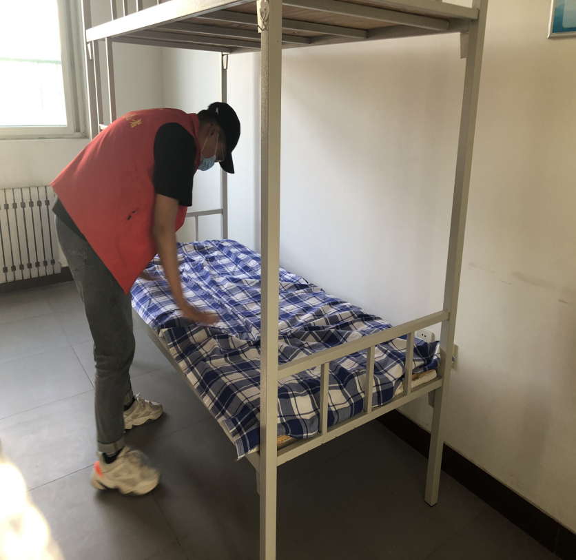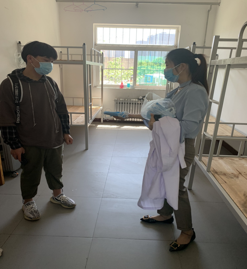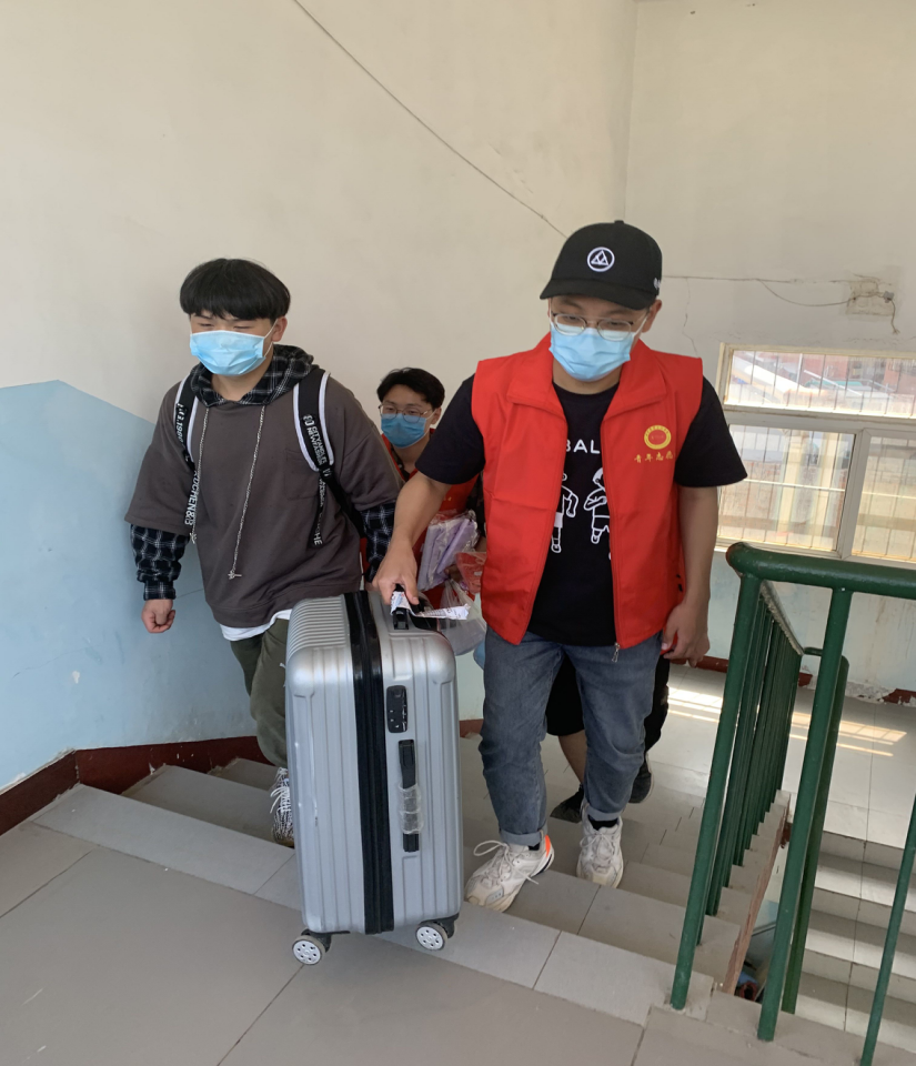 按规定,省外学生回校后要先做核酸检测,他们需要住进隔离区等待出结果。为了照顾他们在隔离期间的生活起居,安抚情绪,我院辅导员周海霞、王硕珍以及8位党员、入党积分组成的志愿者队伍做了细致入微的准备工作。