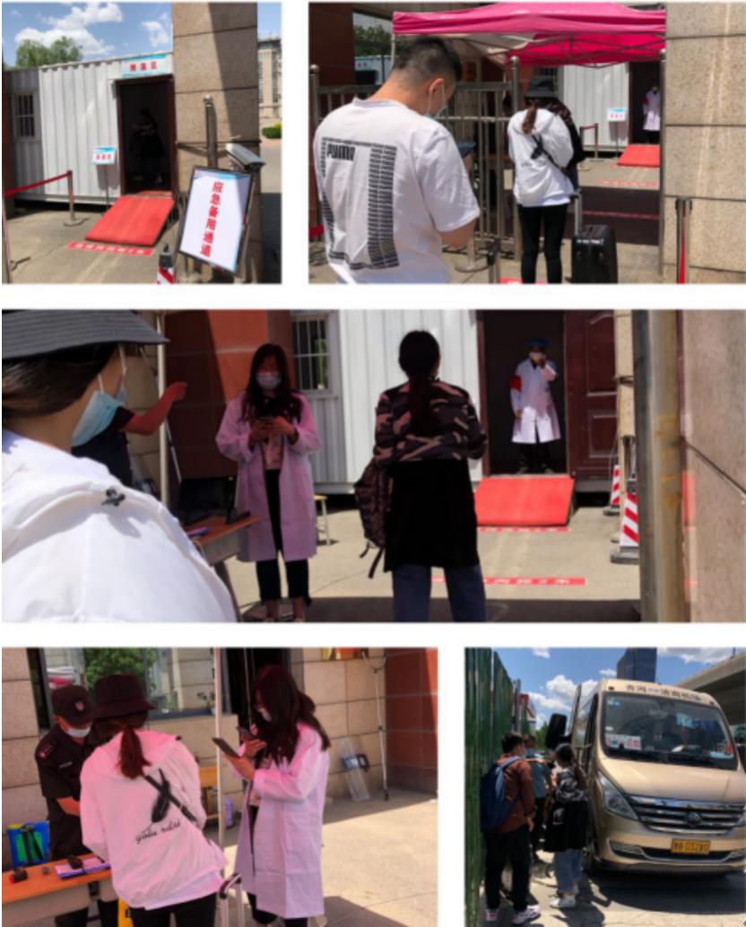 党总支组织党员教工志愿者服务队在飞机场、西客站、东客站、火车站等交通站场热情地迎接返校学子,帮助他们搬运行李,进行消毒消杀,体温检测、身份核验、信息核对,引导乘座校园直通车,护送学生回学校。