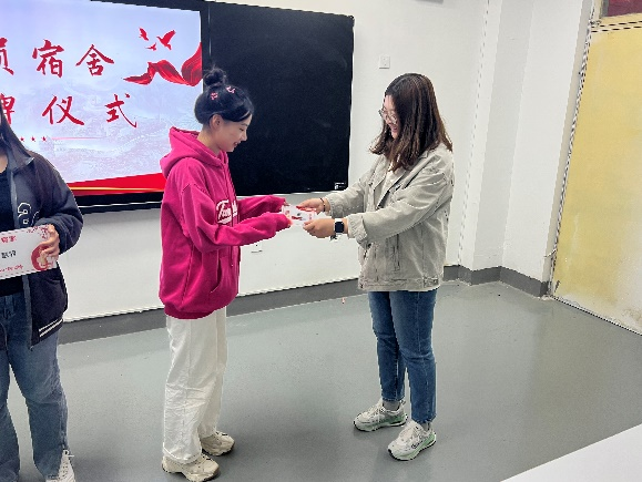 在授牌仪式中李娜老师强调:此次授牌既是荣誉更是一种挑战,学生党员要时刻牢记自己的身份,从学习到工作,从寝室到班级,个人带动整体,积极发挥模范带头作用。推进学院优良院风学风社风建设,真正实现“一名党员,一面旗帜”的目标。同时,将学生党员的工作与积极向上的精神面向学院全体学生展示,激励更多学生向优秀的学生党员看齐,营造积极向上的学习氛围,不忘初心使命,锐意进取。