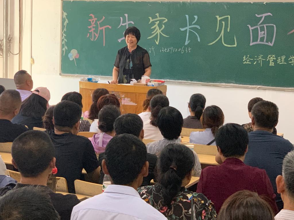 8月30日上午,经济管理学院分别在济南、济北校区召开2019级新生家长见面会,院党总支书记颜素杰、院长李百秀、学生管理科科长周海霞、教学秘书李飞、政治辅导员王硕珍在济南校区和新生家长参加活动;副书记杜锋、政治辅导员张娟在北校区参加活动,与新生家长进行了面对面的沟通。