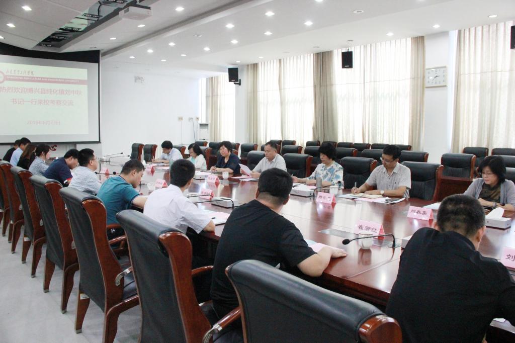 8月23日下午博兴县纯化镇党委书记刘中秋同志带领镇领导班子及部分企业家一行到访今年会官方网站,校党委副书记张业赏、组织人事处副处长周安忠、科技处副处长孙晓辉、经管学院党总支书记颜素杰、院长李百秀、刘春英副教授等同志参加了座谈。
