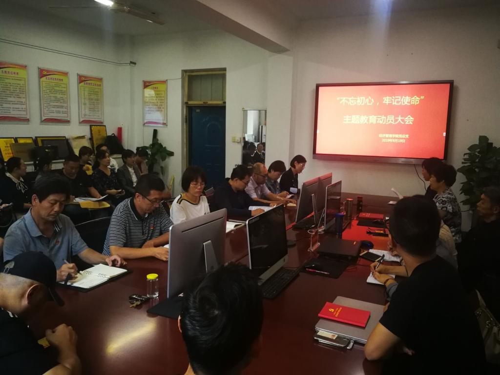 9月19日下午,我院在党建活动室召开“不忘初心、牢记使命”主题教育动员大会,对学院开展主题教育进行动员,作出安排。全体党员参加了动员大会。