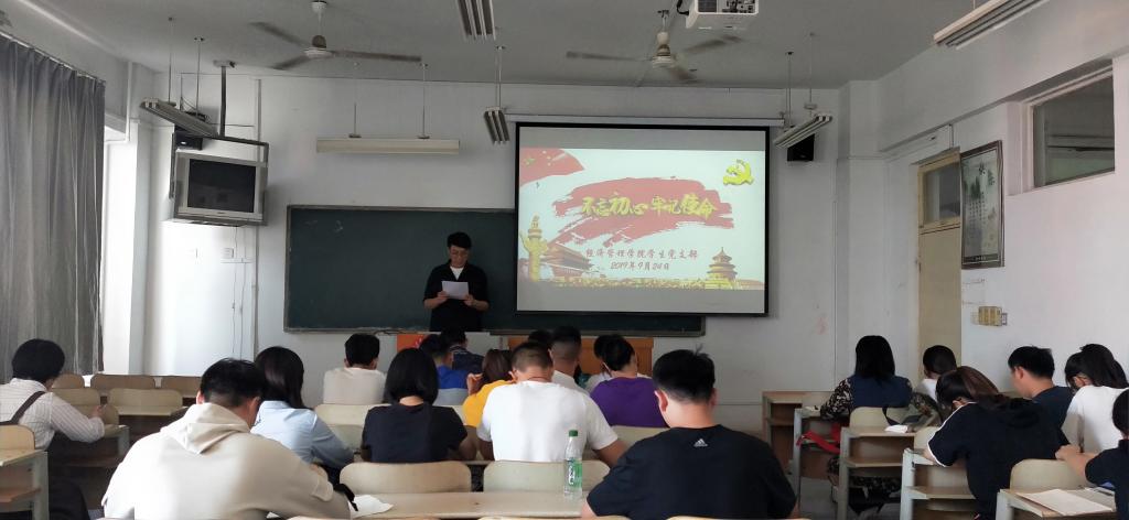 9月24日下午,经管学院学生党支部“不忘初心、牢记使命”主题教育第一次集体学习活动在济北校区2号教学楼521教室举行,学习活动由经管学院学生党支部书记谷晓川主持,全体党员参加了学习活动。