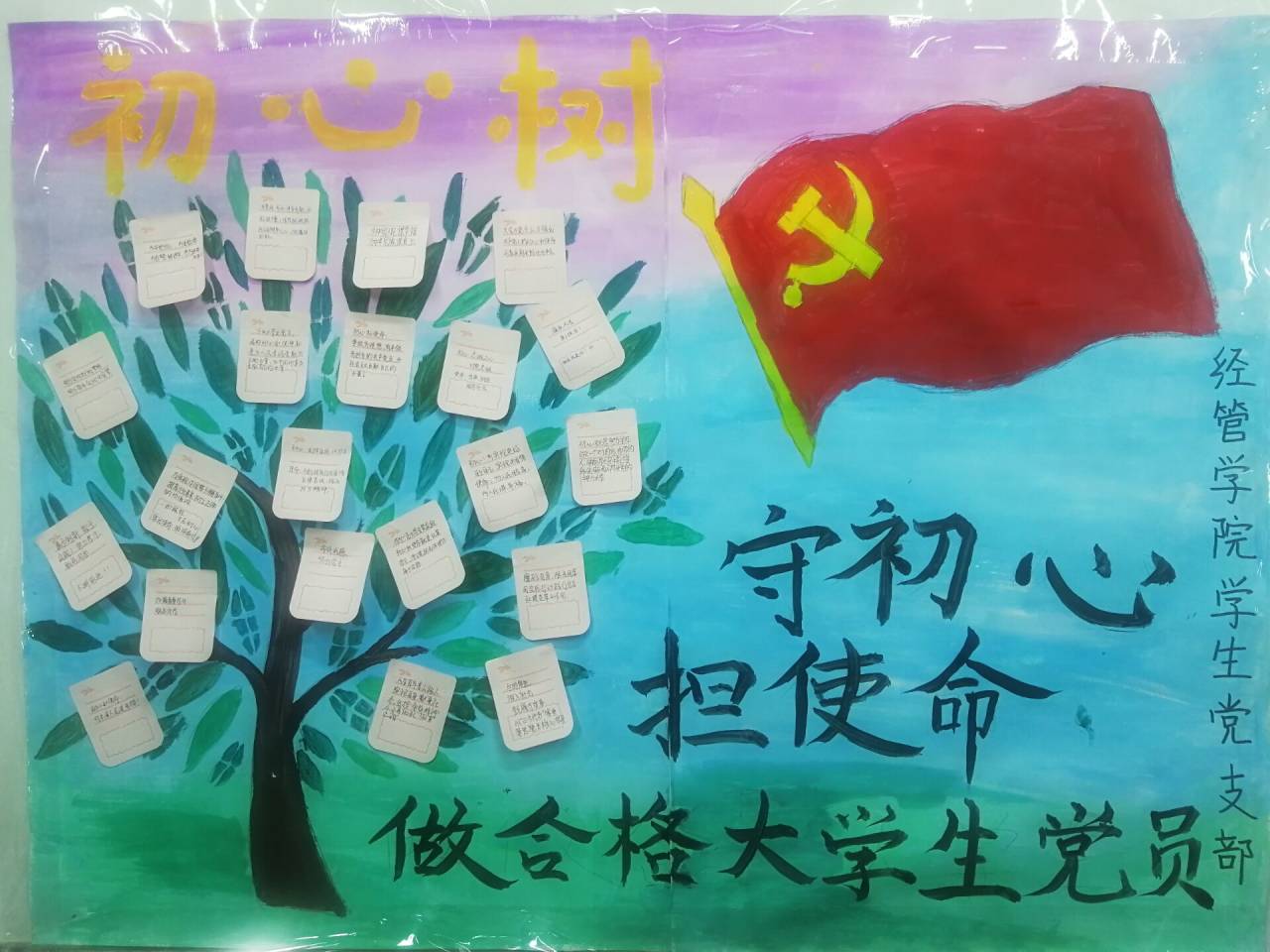 根据党支部“不忘初心、牢记使命”主题教育工作方案, 10月11日晚,经济管理学院学生党支部在北校区2号教学楼521教室组织了第四次“不忘初心、牢记使命”主题教育集体学习。组织全体党员将自己的对初心和使命的理解贴在了“初心树”上。本次活动由经济管理学院学生党支部书记谷晓川主持,学生党支部全体党员参加。