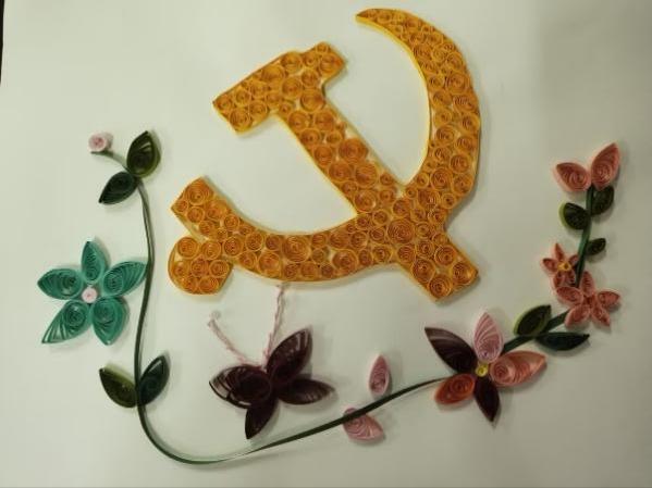 活动现场欢快热闹,同学们全神贯注,用创作的方式赋予衍纸以青春活力。在同学们的巧妙构思和“妙手”创作下,卷动、揉捏、拼接、组合而成的手工艺品精巧绝伦、鲜活饱满。同学们在衍纸作品中致敬五四运动,践行自己热爱祖国、积极创新、勇于探索的青春誓言。
