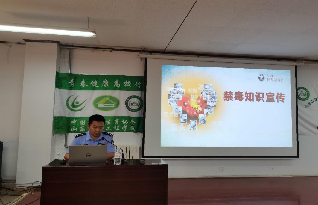 我院青春健康同伴社特邀德州市齐河县公安局一级警司侯荣泰开展“拒绝诱惑、远离毒品”为主题的禁毒知识讲座,齐河县公安局禁毒大队民警及学校师生代表100余人参加。通过播放禁毒宣传警示教育短片、分析戒毒案例等形式深入浅出地向师生们介绍了毒品特别是新型毒品的有关知识和危害,教给大家如何区分毒品、如何预防毒品和远离毒品,告诫广大青年学生要洁身自好、提高警惕,不随便出入娱乐场所,不轻易挥霍青春,做到珍爱生命,远离毒品。