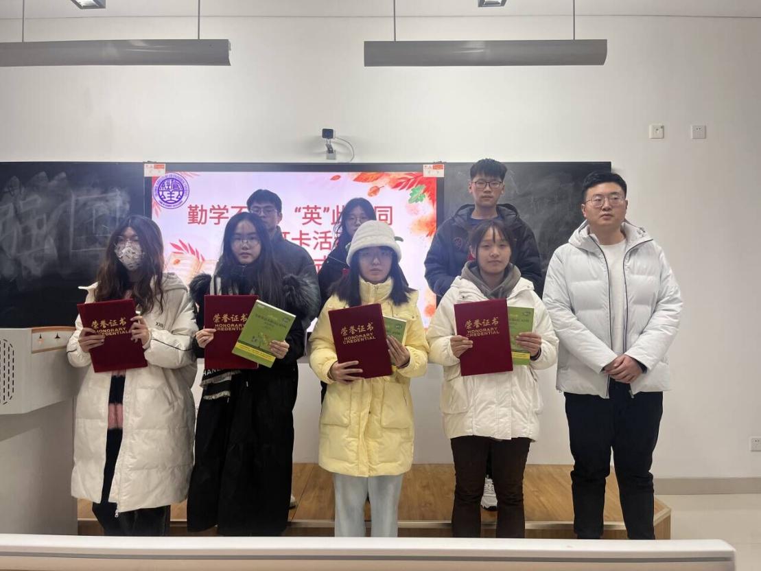 2023年11月30日下午,经济管理学院在淄博校区文法西楼A312教室成功举办“勤学不倦,‘英’此不同”四级单词打卡比赛活动颁奖仪式,辅导员陈大量老师出席本次颁奖仪式。