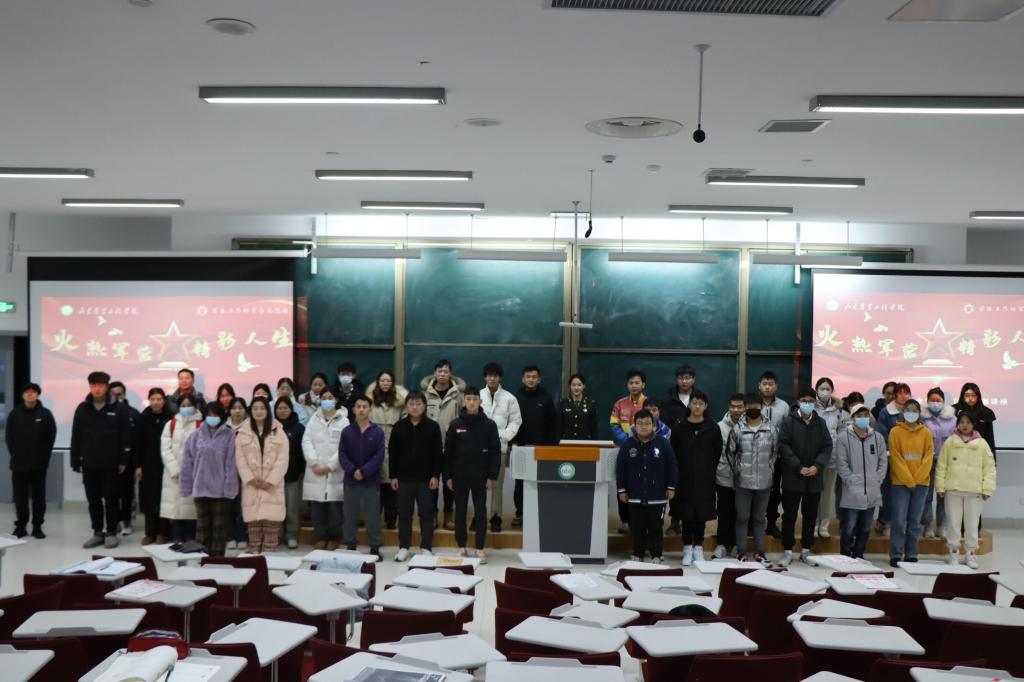 为深入贯彻习近平强军思想,进一步落实国家征兵工作相关要求,引导有志青年参军报国,全力促进毕业生充分就业。2023年12月11日,我院开展秋季征兵宣讲会。此次宣讲会由2021级退伍复学学生李嘉琳担任宣讲员,2024届毕业生及有入伍意愿的在校大学生参加了宣讲会。