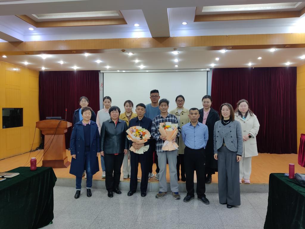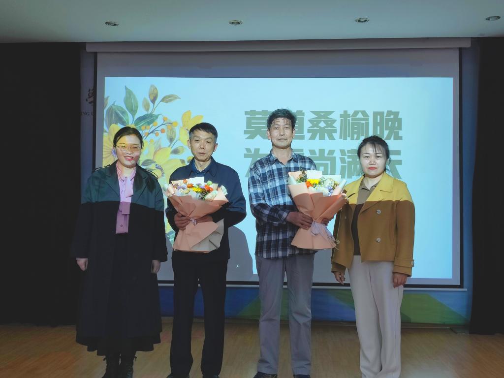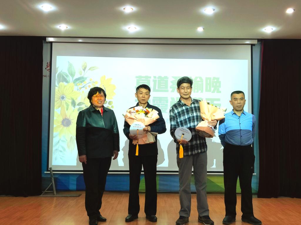 接着,青年教师代表向荣休教师送上鲜花和祝福,书记马勇、院长李百秀为刘建廷、王新奇老师颁发退休纪念品并合影留念。