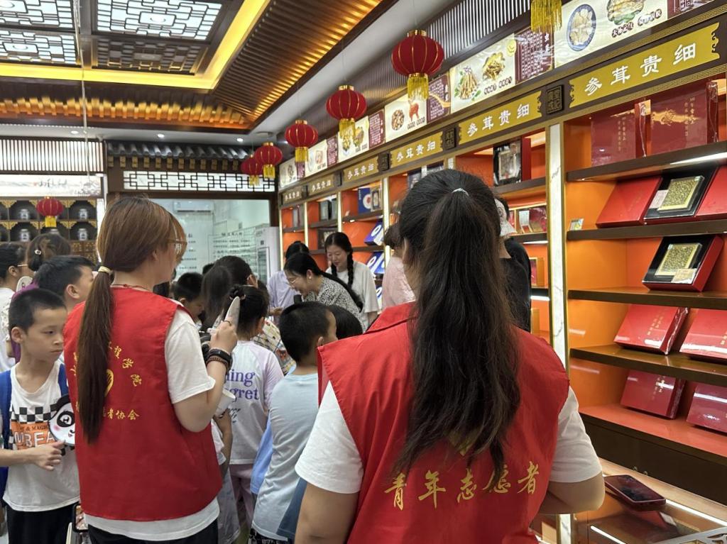 活动开始,孩子们首先步入负一层的中医博物馆,仿佛穿越千年文化长廊。在这里,珍贵的中医文物与古籍如《黄帝内经》的智慧、历代名医的传奇事迹交相辉映,引领他们领略中医文化的深厚底蕴与辉煌历程。讲解员的生动解说,让孩子们对中医的起源、发展及独特价值有了更为深刻地理解,心中不禁生起对中医的敬畏之情。随后,孩子们步入中药材展示区,这里汇聚了各类中药材的精华。在志愿者的悉心指导下,孩子们不仅学会了辨识常见中药材,还积极参与了人参参龄的辨别挑战,通过亲手触摸、仔细观察与嗅闻,亲身体验中药材的神奇魅力。这一环节不仅拓宽了孩子们的视野,更激发了他们对中医药学的浓厚兴趣。