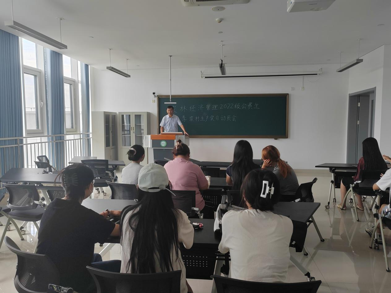 2024年9月2日下午,经济管理学院在淄博校区文法西楼A412召开2022级公费农科生实习动员大会,经济管理学院副院长曲文俏、农经教研室万常林老师及2022级农林经济管理全体公费生参加会议。