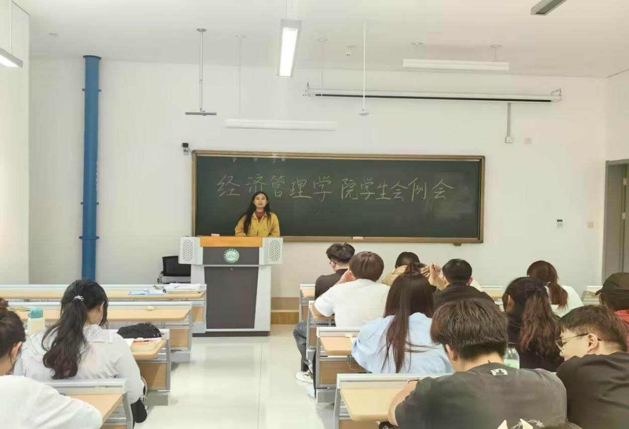 为加强学生会内部建设,确保新学期各项工作顺利开展。近日,我院于文法西楼B105教室召开经济管理学院学生会工作例会,会议由学生会轮值主席张紫嫣主持,全体学生会成员参与本次会议。