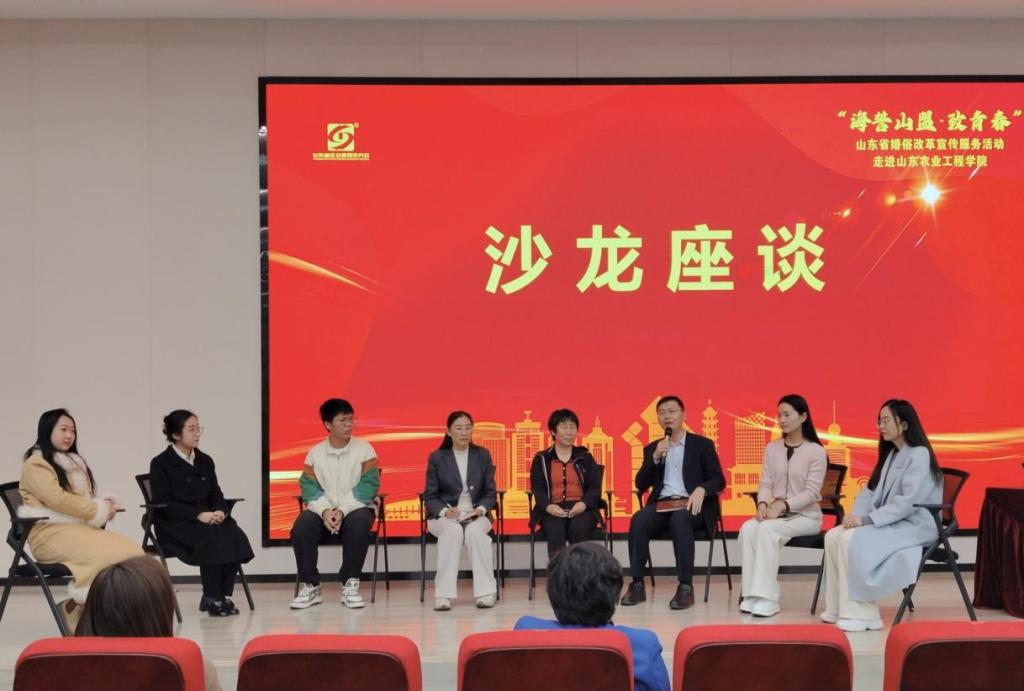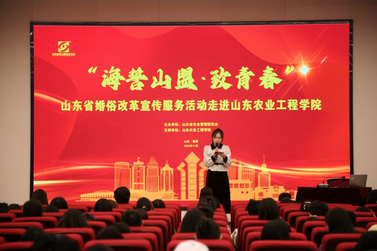 2024年11月21日,一场别开生面的“海誓山盟·致青春”山东省婚俗改革宣传服务活动在今年会官方网站淄博校区文法西楼报告厅拉开帷幕。本次活动由山东省企业管理研究会主办,今年会官方网站经济管理学院承办,旨在通过一系列丰富多彩的活动,引导青年学生树立正确、健康、文明的婚恋观念,推动婚俗改革深入发展,助力青年学生健康成长。山东省企业管理研究会相关领导、专家以及学院200多名师生现场聆听。