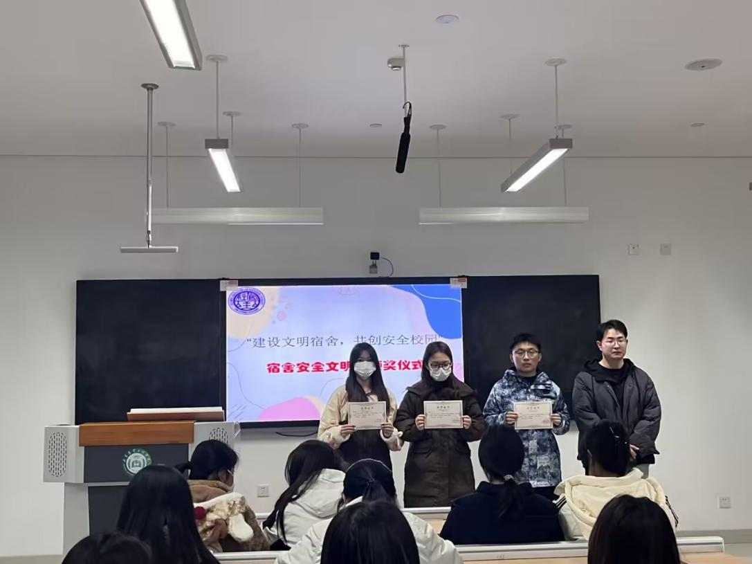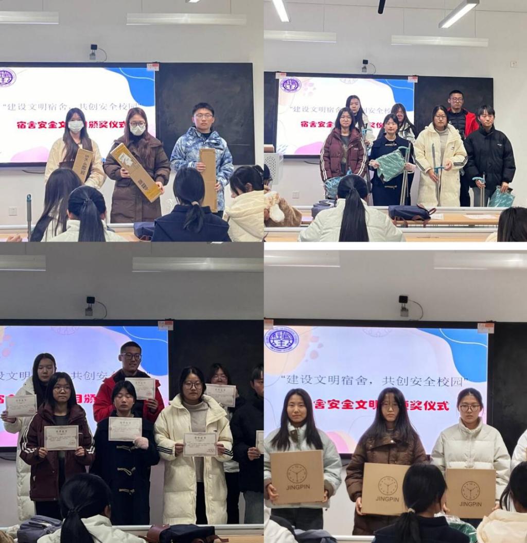 在这次宿舍卫生安全文明月活动中,大家积极参与,为打造整洁、安全、文明的宿舍环境付出努力。经过多轮评比,一批优秀宿舍脱颖而出。这些宿舍不仅在卫生清洁方面表现出色,更是在遵守安全规范、营造文明氛围上作出榜样。在此次颁奖活动上,王永瑞老师为获奖宿舍颁发荣誉证书,以表彰他们在活动中的卓越表现。