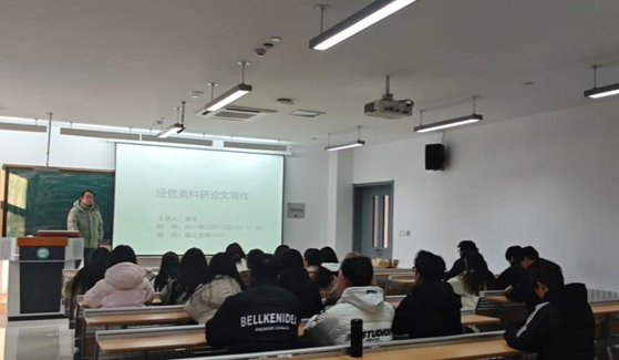 2024 年 12 月 20 日,经济管理学院副教授常乐老师主讲的经管类科研论文写作讲座在淄公北楼B505 顺利举行,21级物流工程专业学生聆听了讲座。