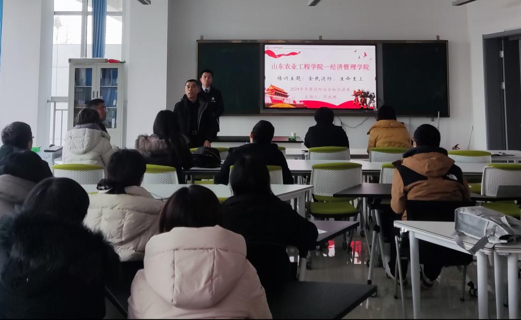为增强全体教职工的消防安全意识,全面提升经济管理学院安全管理水平,2024年12月19日,我院于淄博校区文法西楼A202开展了消防安全专题培训活动。本次活动邀请到了校外专业消防安全讲师毕杰刚进行讲授,全体教职工参加了活动。