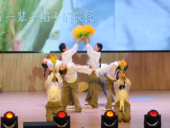 必选曲目《花儿为什么这样红》为观众呈现了浓郁的民族风情,灵动的舞姿,绚丽的服饰将新疆舞的魅力展现的淋漓尽致。自选曲目《芽》则以独特的创意致敬袁隆平院士,通过舞蹈语言诠释“禾下乘凉梦,凭借真挚的情感表达与精湛的舞蹈技巧打动评委和观众。经济管理学院参赛队伍最终获得比赛第四名,喜提三等奖。